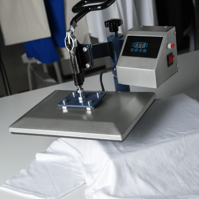 Use a heat press to transfer the design from paper to fabric, creating a durable image.